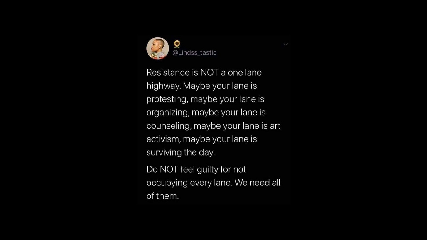 We have to reject binary thinking. We have to stop pretending that there’s only one way to resist, that you’re either a revolutionary or a sellout, that you either burn it all down or you’re complicit. That thinking keeps us small. It keeps us fighting each other instead of the systems crushing us all.